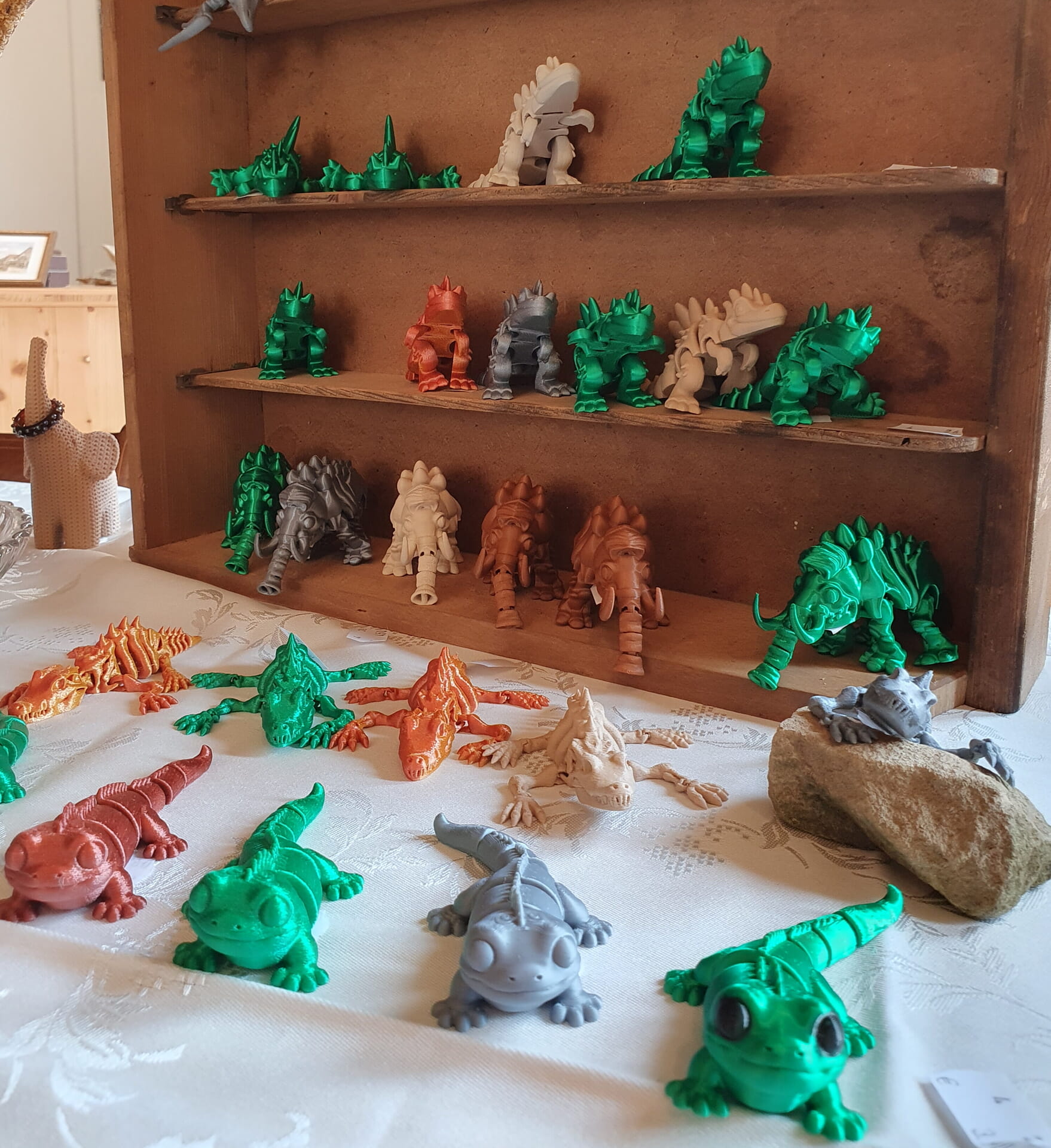 Gedruckt werden alle Figuren aus dem Biokunststoff PLA, einem auf Mais, Zuckerrohr oder Zuckerrüben hergestellten, lebensmittelechtem Polyester, welcher biologisch abbaubar ist. Diese dürfen aber nicht in der Umwelt entsorgt werden.