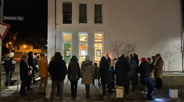 Für etwa 30 Minuten singen, beten und hören wir weihnachtliche Geschichten und Gedichte – an einem liebevoll gestalteten, beleuchteten Fenster.